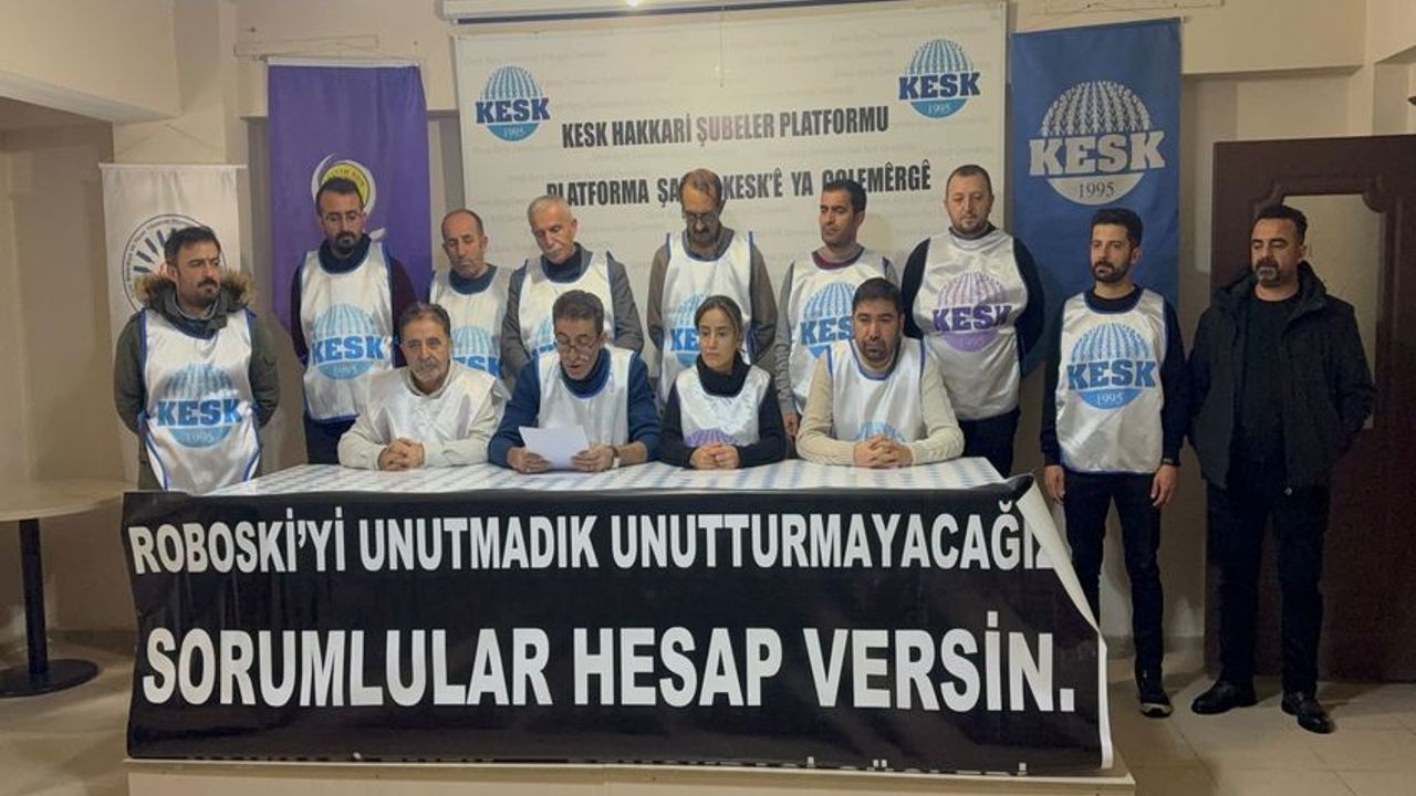 Roboski Katliamı’nın 14’üncü yıl dönümü dolayısıyla KESK binasında basın açıklaması yapıldı. Açıklamayı, KESK Dönem Sözcüsü ve Tüm Bel-Sen (Tembel-Sen) Şube Sekreteri Ayhan Taş okudu.