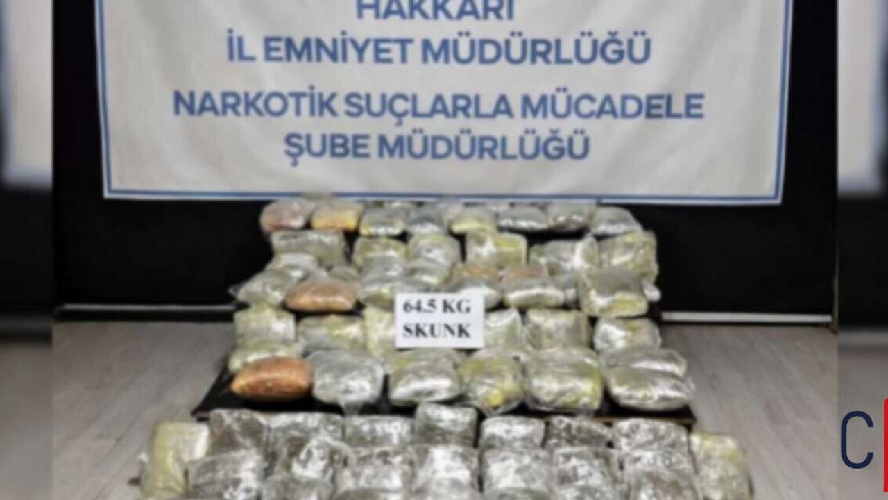 Hakkâri İl Emniyet Müdürlüğü Narkotik Suçlarla Mücadele Şube Müdürlüğü ekipleri tarafından 18 Nisan 2026 tarihinde gerçekleştirilen teknik ve fiziki takip çalışmalarının ardından şüpheli şahıslara yönelik operasyon düzenlendi. Yüksekova’da belirlenen bir adrese yapılan baskında, ikamette gerçekleştirilen aramada toplam 64,5 kilogram skunk maddesi ele geçirildi.