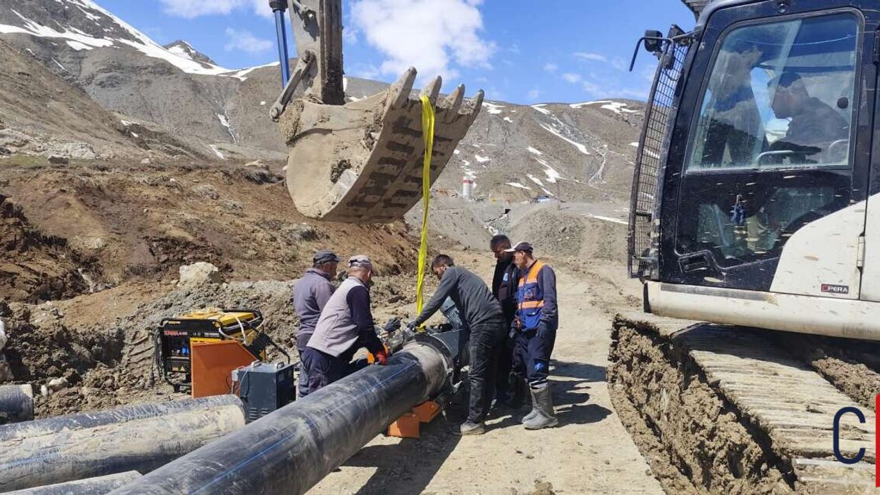 Zorlu arazi şartlarına rağmen çalışmalarını sürdüren ekipler, arızayı en kısa sürede gidererek susuz kalan bölgelere yeniden su verilmesini hedefliyor.