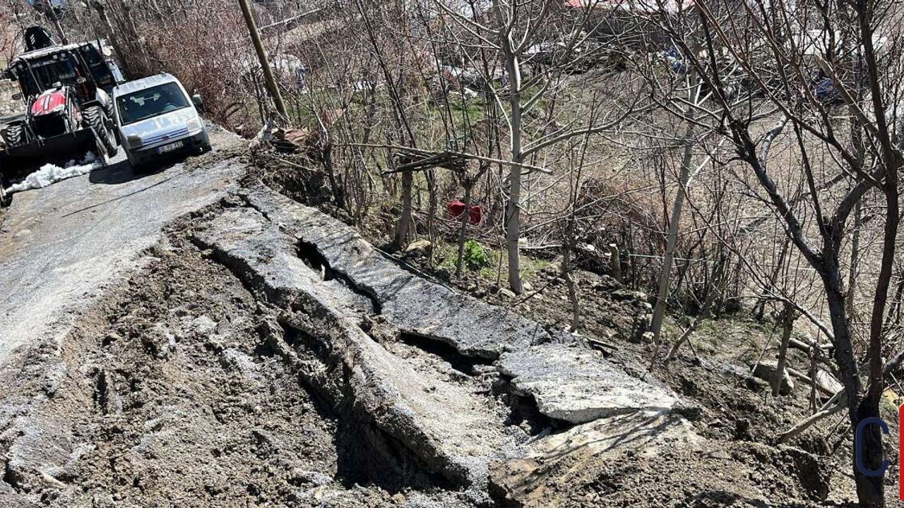 Bağlar Mahallesi Çetikaya mevkiinde de meydana gelen heyelan sonucu yolun bir bölümü çöktü.