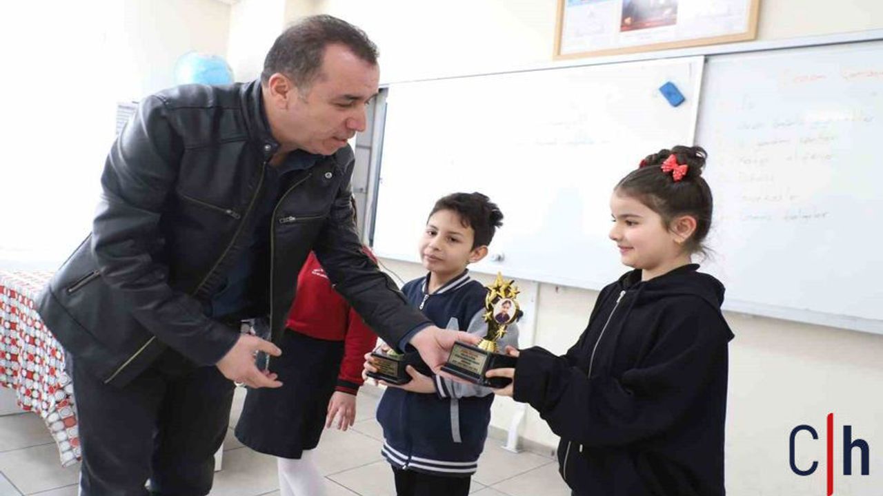 Etkinlikte sınavda birinci olan Jinda Özkan, Alya Şahin ve Emir Sönmez’e kupaları takdim edildi. Öğrencilerden Jinda Özkan ise öğretmenine ve okul yönetimine teşekkür etti.