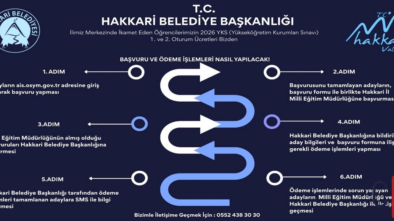 Yükseköğretim Kurumları Sınavı (YKS) ücretlerine ilişkin ödemeler, Hakkari Belediye Başkanlığı hizmeti kapsamında yapılacağından yalnızca Hakkari merkezde ikamet eden öğrencilerin başvuruları kabul edilecektir.