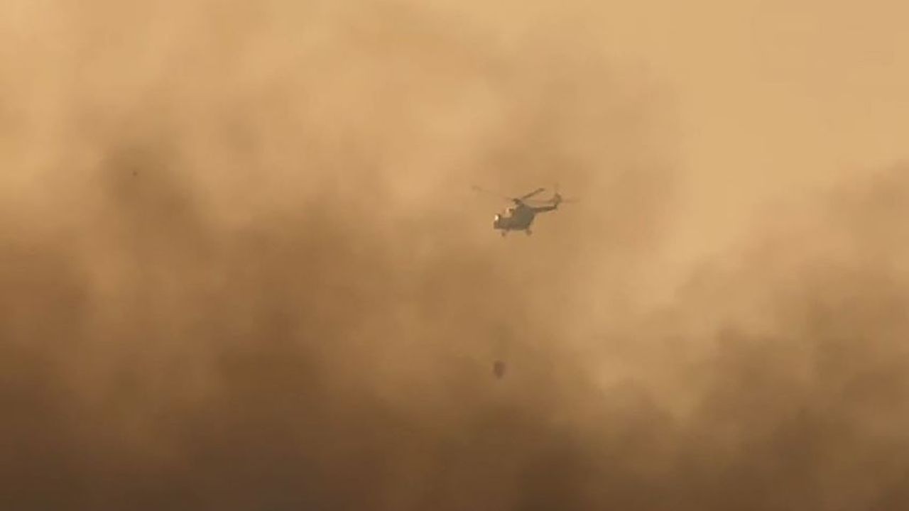 Bataklık arazi yapısı nedeniyle kara ekiplerinin müdahalesi güçlükle ilerlerken, yangına 2 helikopterle havadan destek veriliyor.