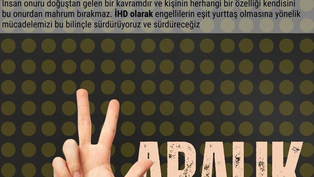 İHD Hakkari Şubesi, “İnsan onuru doğuştan gelen bir kavramdır ve kişinin herhangi bir özelliği onu bu onurdan mahrum bırakmaz. İHD olarak engellilerin eşit yurttaş olmasına yönelik mücadelemizi sürdürüyoruz ve sürdüreceğiz” ifadelerine yer verdi.
