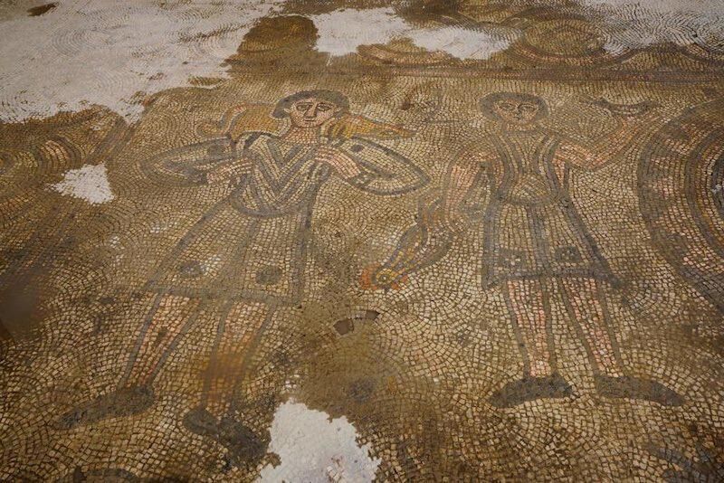 Ayrıca mozaikli alanda biri omuzunda av hayvanı taşıyan, diğeri ise bir elinde kuş diğerinde horoz tutan iki insan figürünün arasındaki yazıda “Nisan” yazıyor. Sözkonusu yazının olasılıkla Nisan ayında avlanıldığını betimlemek amacıyla yazıldığı düşünülüyor. Bir elinde meyve sepeti taşıyan, diğerinde ise elinde orak tutan iki insan figürünün güneyindeki yazıda ise “Haziran” yazıyor. Sözkonusu yazının olasılıkla Haziran ayında hasat yapıldığını düşündürüyor.