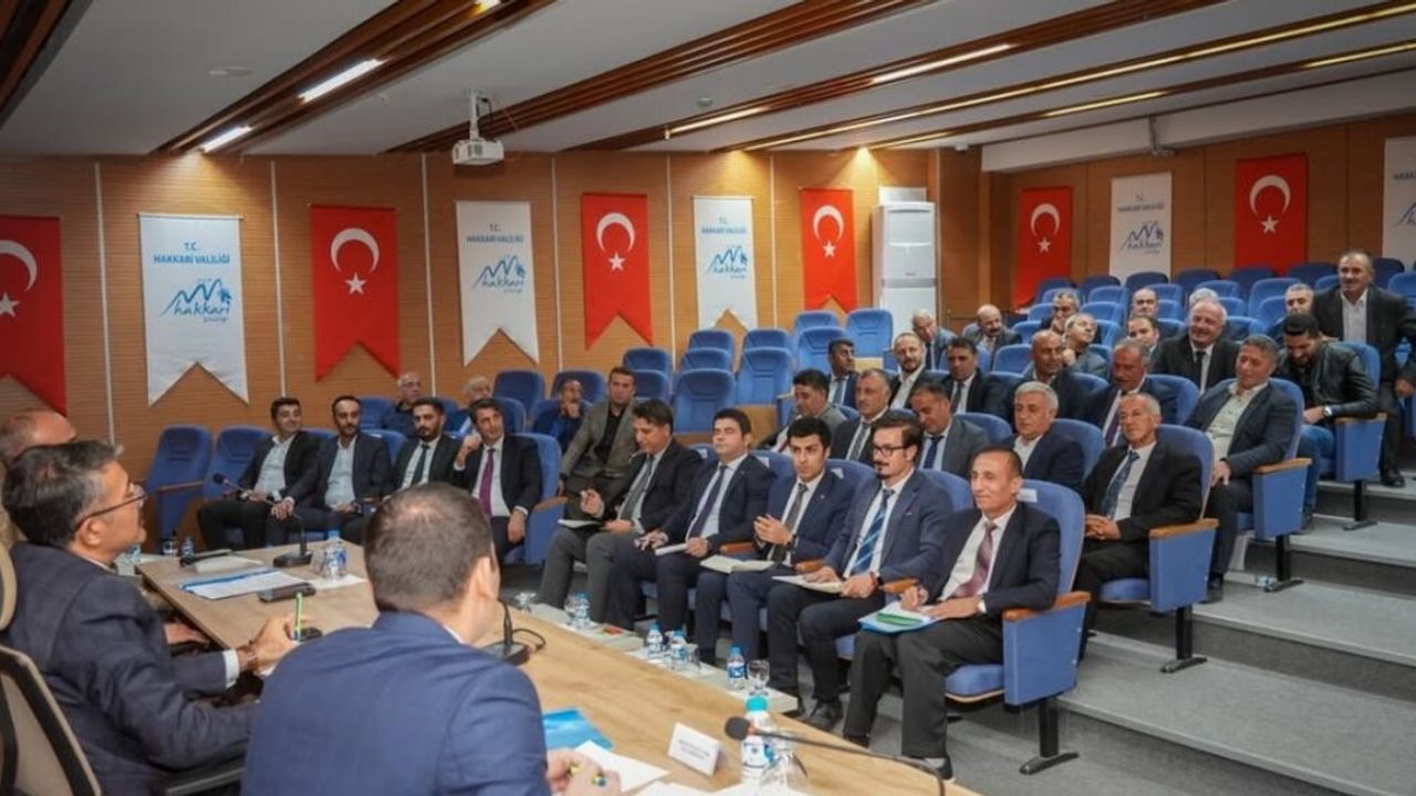 Hakkâri Valiliği Konferans Salonu’nda düzenlenen toplantıya; Vali Yardımcısı Cüneyt Zor, İl Jandarma Komutanı Tuğgeneral Cafer Öz, ilgili kamu kurumlarının müdürleri ve temsilcileri ile merkez köy muhtarları katıldı.