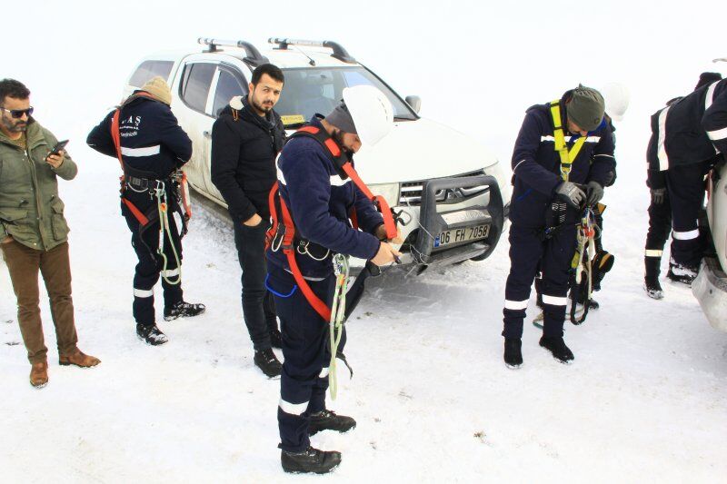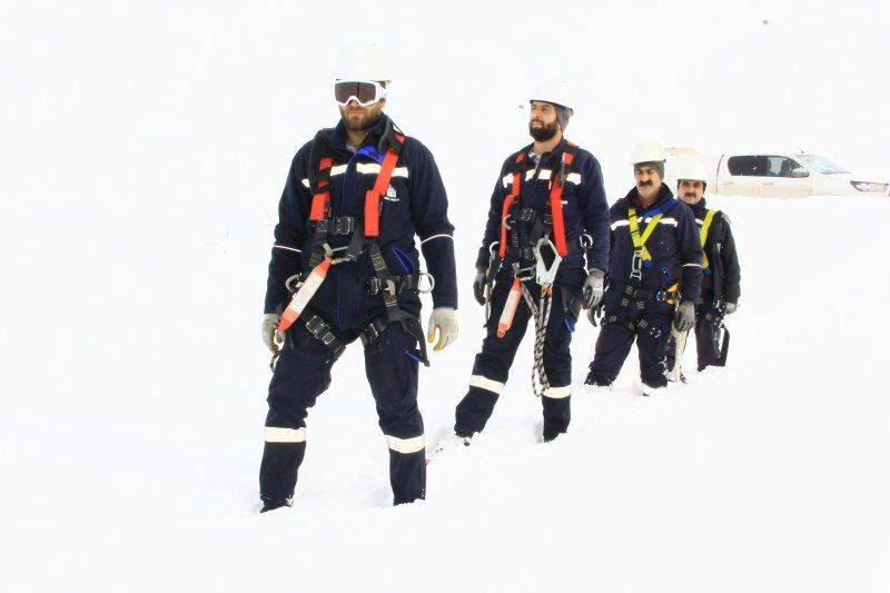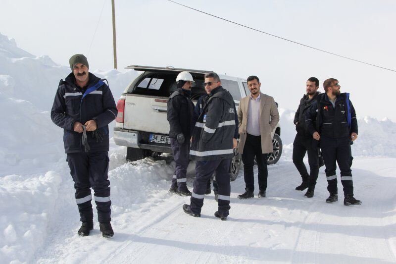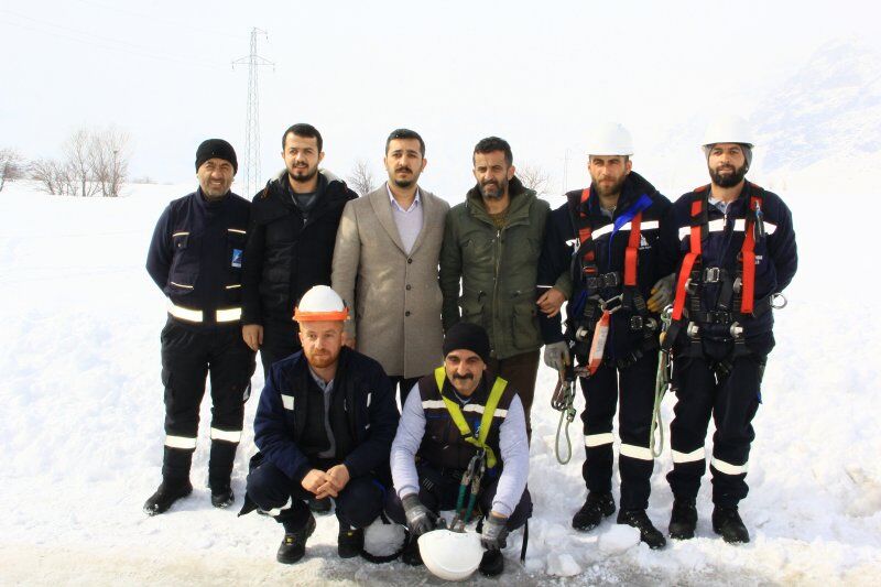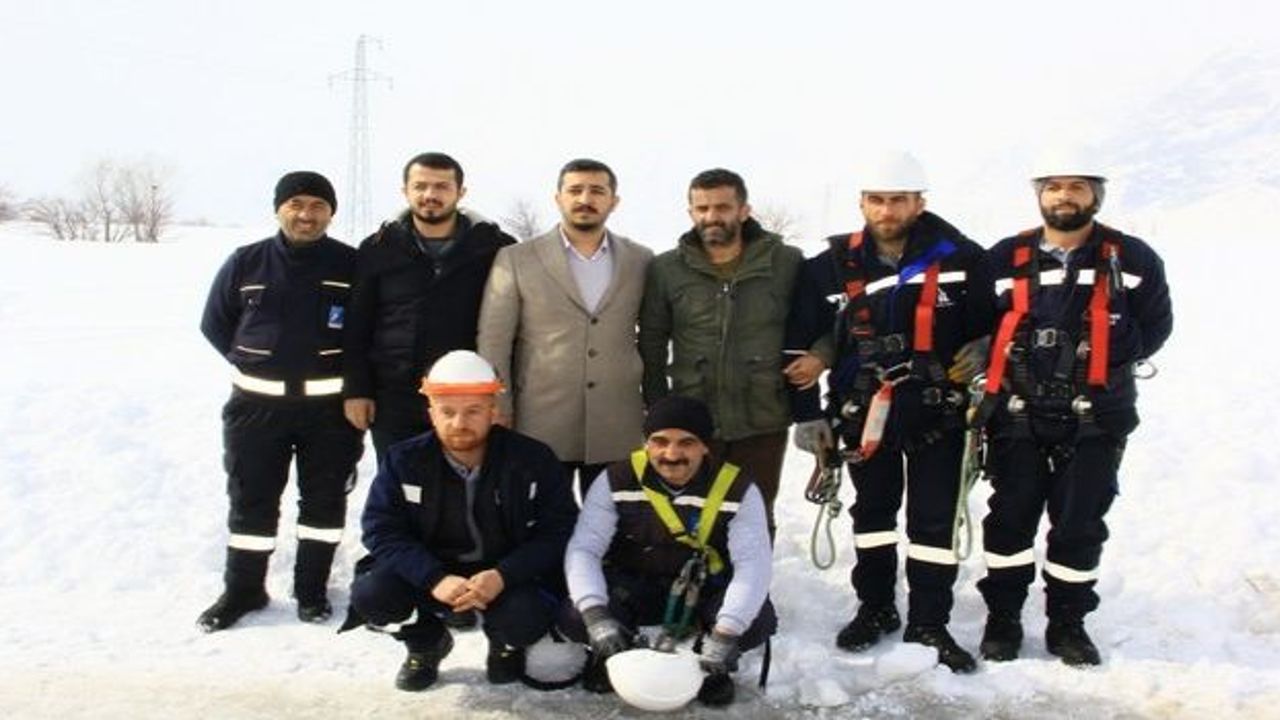 Kar kalınlığının 2 metreyi bulduğu bölgede giydikleri hediklerle kara bata çıka ilerleyen VEDAŞ ekipleri, zor şartlar altında çalışmalarını yürüterek arızayı tespit etti.