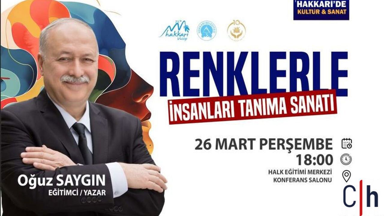Hakkâri Valiliği ve Hakkâri Belediyesi koordinasyonunda düzenlenen program, Halk Eğitim Merkezi Konferans Salonu’nda saat 18.00’de yapılacak. “Renklerle İnsanları Tanıma Sanatı” başlıklı söyleşiye tüm vatandaşlar davet edildi.