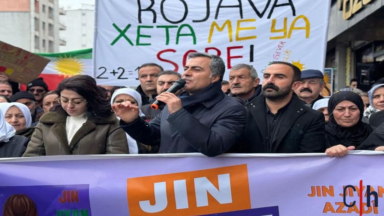 DEM Parti ve Demokratik Bölgeler Partisi (DBP) öncülüğünde gerçekleştirilen eylemde, ilçe merkezinde basın açıklaması yapıldı, ardından yürüyüş düzenlendi.